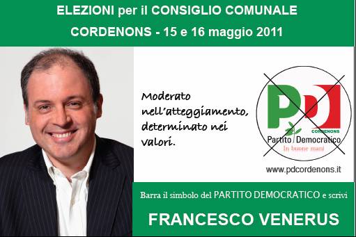 Sono iscritto al Partito Democratico e dal 2006 ricopro l’incarico di Assessore al Bilancio e Personale nell’Amministrazione del Sindaco Carlo Mucignat.